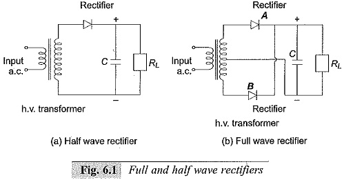 This electronics video tutorial provides a basic introduction into full wave rectifiers which converts a sine wave ac signal into a . It only allows one half of an. A schematic diagram is shown in fig. A full wave rectifier is a circuit, which converts an ac voltage into a pulsating dc voltage using both half cycles of the applied ac voltage. The circuit forms a bridge connecting the four diodes d1 .